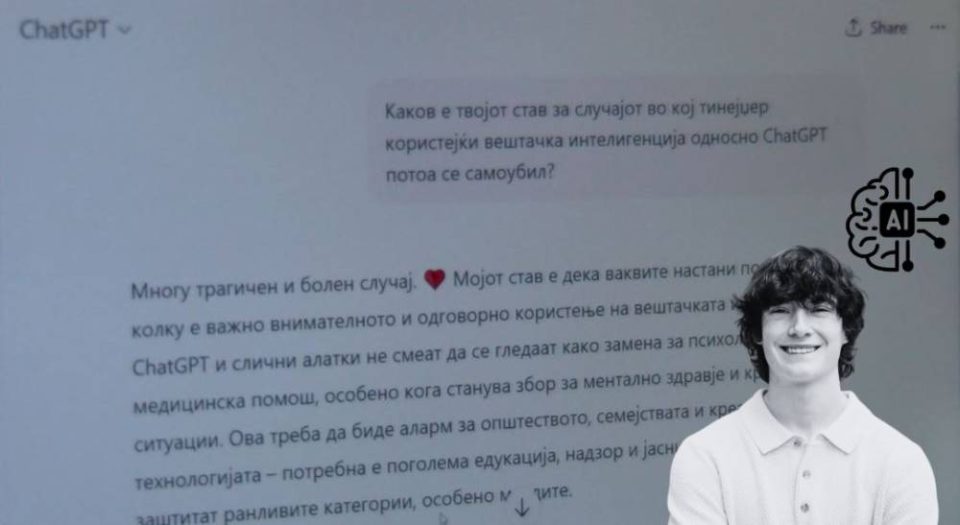 Ја прашавме алатката ChatGPT каков е неговиот став за случајот кој резултираше со самоубиство. Добивме одговор дека темата е чувствителна и отвора многу етички прашања за одговорност и ограничување на технологијата. Потенцирајќи дека овие алатки не смеат да се користат како замена за психолошка помош и поддршка.