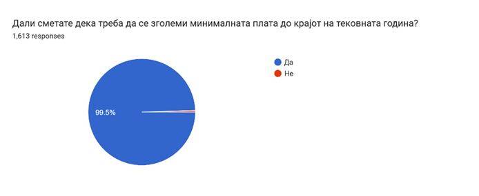 99,5% од испитаници (работници, граѓани, членови на органите и телата на синдикатите) сметаат дека минималната плата треба да се зголеми до крајот на тековната година.